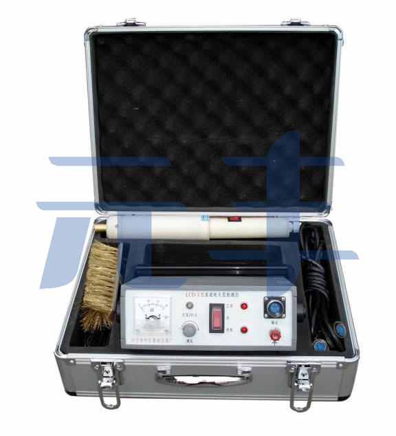 電火花檢漏儀為高壓儀器,是用于檢測鋼套鋼直埋蒸汽管外防腐涂層質(zhì)量的專用儀器,使用本儀器可以對不同厚度的環(huán)氧煤瀝青、3PE、聚脲和玻璃鋼等涂層,進行質(zhì)量檢測。當防腐層有質(zhì)量問題時,如出現(xiàn)針孔、氣泡、裂隙和裂紋,儀器將發(fā)出明亮的電火花,同時聲光報警,從而達到對防腐層檢測之目的。