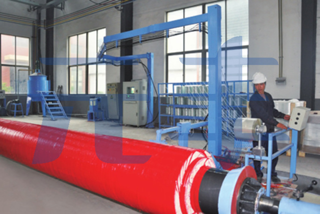 數控自動纏繞生產線主要裝備:由微機控制系統、攪拌罐、纏繞機、制襯機、固化站、修整機等組成,各單機按生產夾砂管道流水線進行布置。電腦數控程序控制纏繞機在整個生產線中起著舉足輕重的作用,操作簡便、性能穩定,大大提高了鋼套鋼保溫管生產效率和質量。