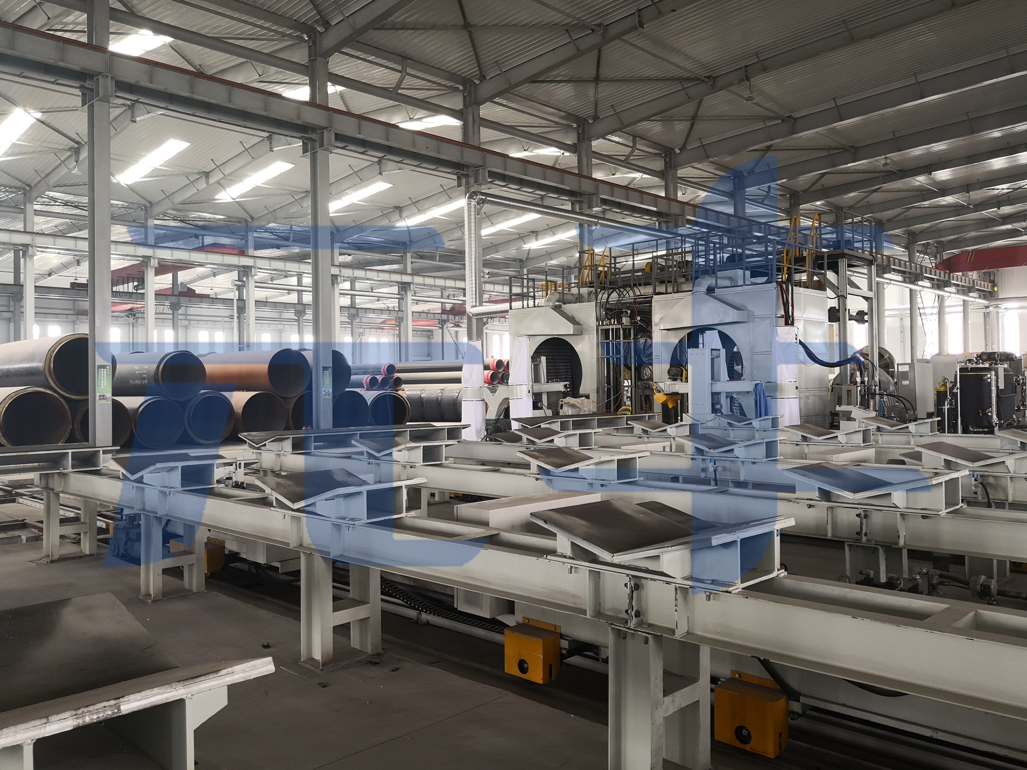 中頻感應加熱器為聚氨酯噴涂纏繞保溫管生產線組成部分。工作鋼管通過感應器,感應器產生交變磁場在工件中產生出同頻率的感應電流,這種感應電流在工件的分布是不均勻的,在表面強,而在內部很弱,到心部接近于0,利用這個集膚效應,可使工件表面迅速加熱,而心部溫度升高很小。