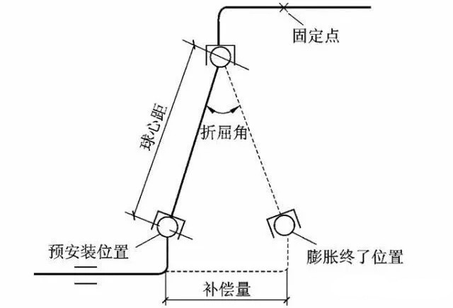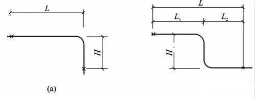 自然補(bǔ)償器是利用保溫管道自然轉(zhuǎn)彎構(gòu)成的幾何形狀所具有的彈性來補(bǔ)償管道的熱膨脹,使保溫管道應(yīng)力得以減小。常見的自然補(bǔ)償器有L型(a)、Z型自然補(bǔ)償器(b),如圖一所示。