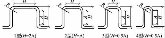 方形補(bǔ)償器通常是由四個(gè)90°無縫鋼管煨彎或機(jī)制彎頭構(gòu)成的U型補(bǔ)償器,依靠彎管的變形來補(bǔ)償管段的熱伸長。方形補(bǔ)償器制造、安裝方便,不需要經(jīng)常維修,補(bǔ)償能力大,作用在固定點(diǎn)上的推力(即補(bǔ)償器的彈性力)較小,可用于各種壓力和溫度條件,缺點(diǎn)是補(bǔ)償器外形尺寸大,占地面積多。為了提高補(bǔ)償器的補(bǔ)償能力(或減少其位移量)常采用預(yù)先冷拉的辦法,一般預(yù)拉伸量為保溫管道伸長量的50%。在極限情況下,其補(bǔ)償能力可比無預(yù)拉時(shí)提高一倍。圖三是計(jì)算鋼制方形補(bǔ)償器的線算圖,圖四是方形補(bǔ)償器的類型圖。